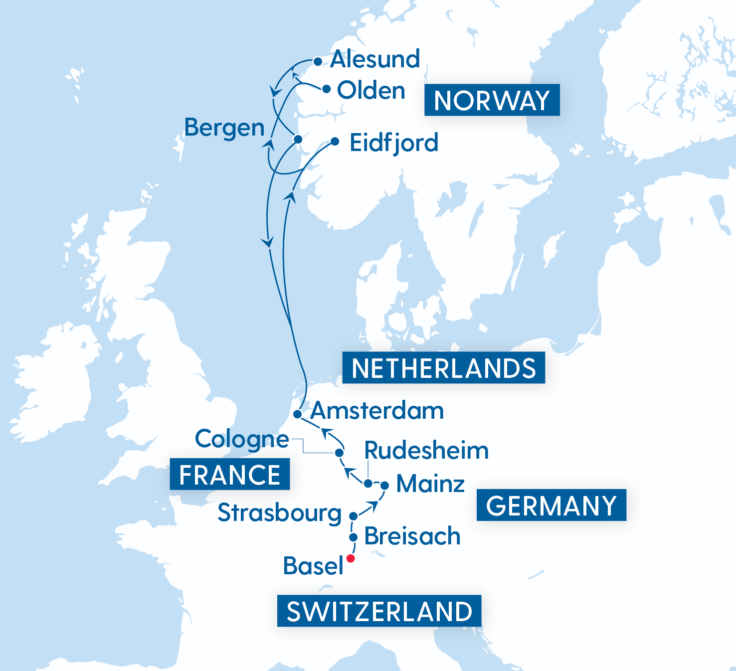 This extraordinary journey combines a 7 night river cruise from Basel to Amsterdam onboard Avalon Vista with a 7 night ocean cruise roundtrip from Amsterdam onboard Rotterdam. Begin with captivating European river towns, scenic cruising, and included excursions before transitioning to the dramatic fjords of Norway with Holland America’s “Have it All” experience.