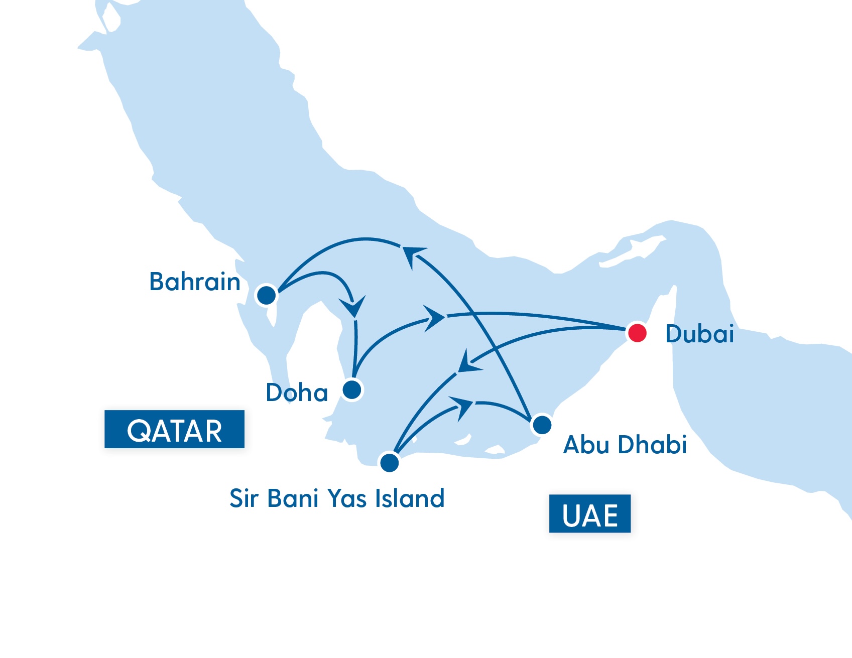 Your journey begins with a flight from the UK to Dubai, where you’ll settle in for a four-night stay, giving you ample time to explore the city at your own pace. After days spent discovering Dubai’s mix of modern marvels and cultural treasures, you’ll transfer to the port to embark on MSC World Europa. From there, your cruise takes you to the tranquil beaches of Sir Bani Yas Island, followed by the glittering skyline of Abu Dhabi. A relaxing day at sea offers time to unwind before arriving in Bahrain, then sailing on to vibrant Doha.