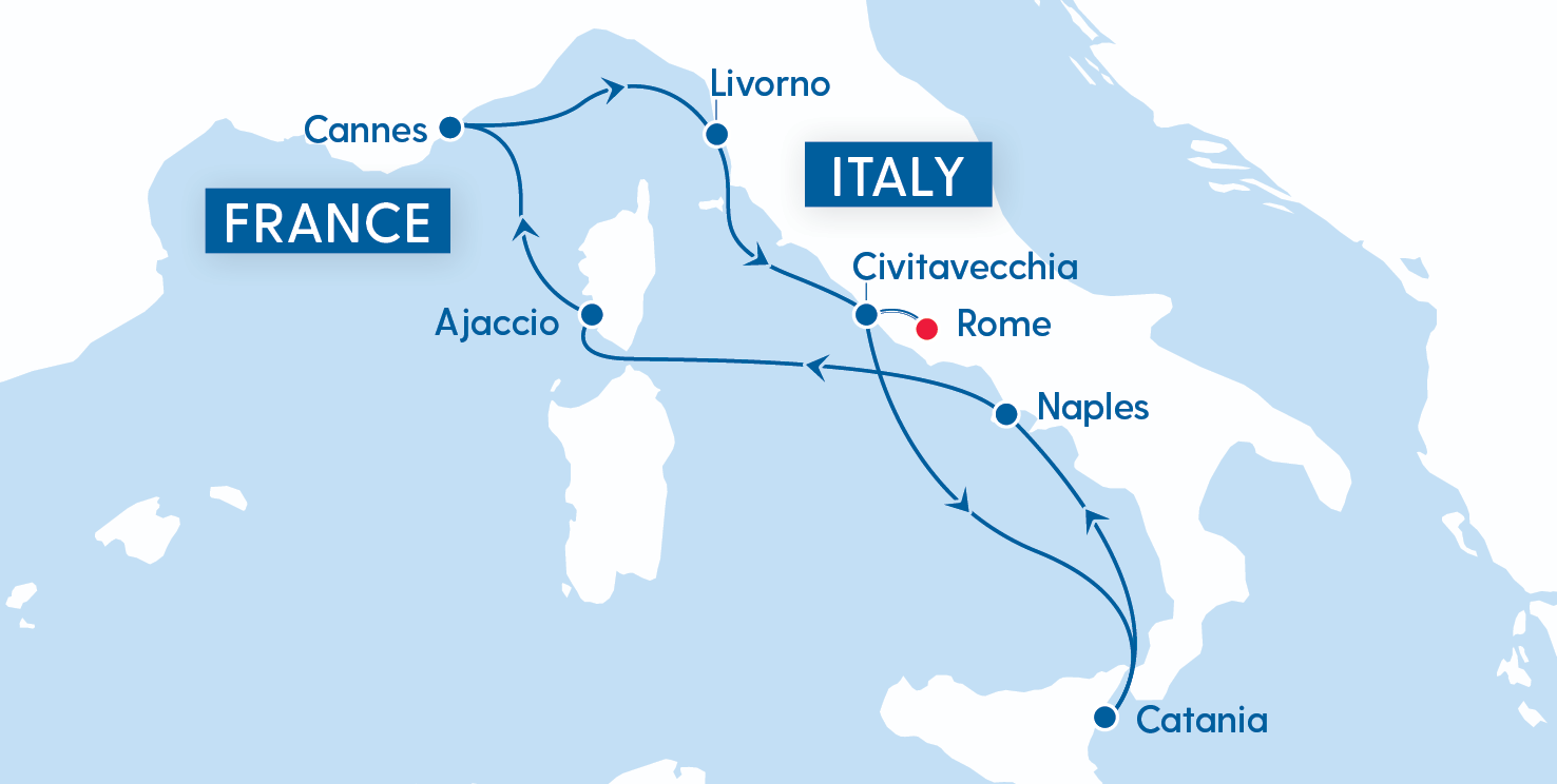 Day 12: Civitavecchia (Rome), disembark, transfer to airport, fly UK